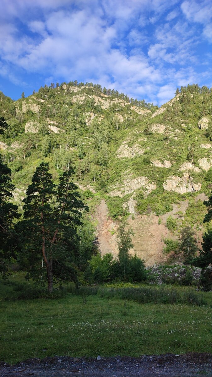 Наша база располагалась на левом берегу реки Катунь. Сам подвесной мост находится в селе Анос, до села Анос с базы 5 км. Рано утром мы двинулись в путь, Солнце только вставало, холод ещё не ушёл. Подходя к селу Анос посыпались с гор камни, бело немного страшно. Сразу вспомнился древний человек, который всё это принимал как что-то роковое. Заходя в село, стали виднелся первые дома и лай собак. По дороге главной нужно идти прямо, а потом свёрток уходит на лево, там и встретили телят и коров. Потом на глаза попадается памятник защитникам родины, он ухожен, свежие цветы в перемешку с искусственными. И сразу после него подвесной мост, который служит для жителей Сноса прямым переходом на правый берег Катуни. Мост узкий, но сетка платно прилегает по низу, вещи не укатиться в реку, а телефоны не выпадут. На правом берегу остановка, а рядом на полянке гуляют кони. С моста видны пороги достаточно крутые. Холодная вода, холодное утро, холодный ветер - вот такие ощущения на мосту. Но солн