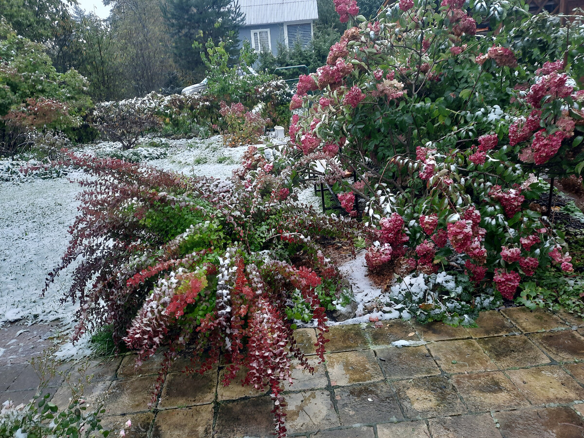 Под первыми тяжелыми хлопьями прогнулся любимчик барбарис и красотка гортензия.