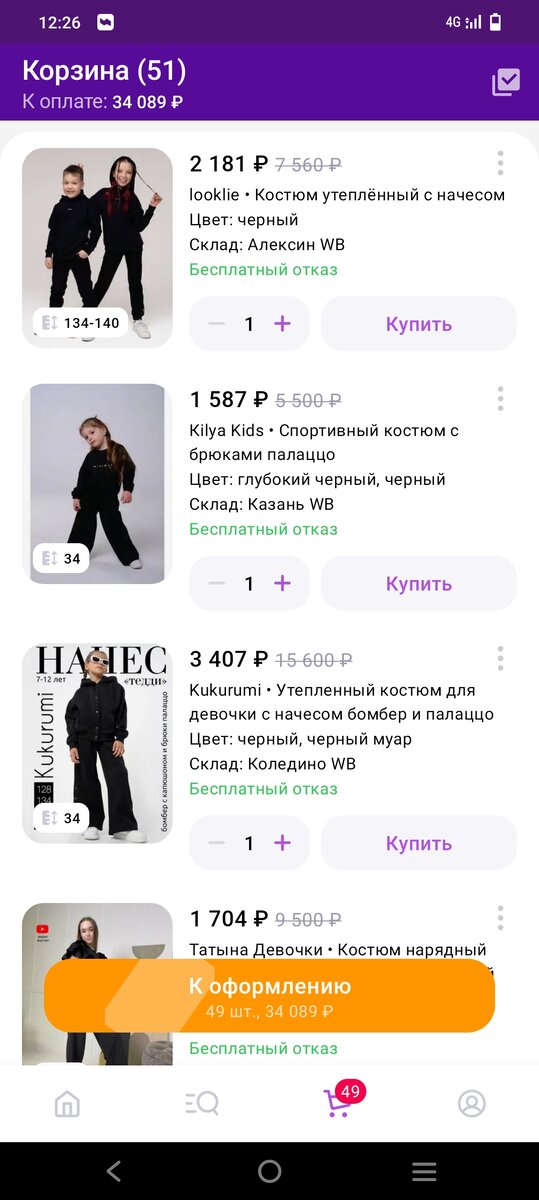 Я ведь даже у ОКей Гугла спросила, все ли в порядке с моим ребенком и почему девочка 8 лет стала тянуться к черным вещам? Успокоилась, говорят, ничего страшного, ведь именно в это время "дети - уже не дети" начинает искать свою индивидуальность и розовый считается уделом малышек. Скажу сразу, дочь я не балую, (в отличие от себя) у нее есть самое необходимое, на остальное или копит сама или просит у отца. Поэтому "бедный" ребенок решил потратить подаренные на день рождения деньги на одежду...черную. Чтобы все чёрное - от рюкзака до носков! Только сегодня я поняла, что отстала от жизни, от моды и от дочери.... Полистали на ВБ, кое-что закинули в корзину, но удовольствия я от таких покупок не понимаю: не потрогать, не понюхать, да и цены от магазинных не особо отличаются, поэтому решили ехать и нюхать. Сейчас не скупой платит дважды, а тот у которого нет времени или желания разбираться, где лучше и дешевле. Я не скупердяйка, но просто так тратить деньги не буду. Люблю, когда вещь радует
