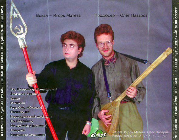 А вот и знаменитое "Пояснение для новых читающих". Итак, Олег Назаров - человек без определённого рода занятий, хотя прежде таких называли "пиарщиками", потом - "шоуменами", а ныне это у нас "ивентщики". Вродь как, эксперт в области маркетинга ресторанов, профессиональный "продвиженец", как он сам себя называет, а также писатель, не так давно рәхәтләнеп издал десятую книгу. А меж тем в своё время он выступал с каким-то Петросяном, какой-то Кларой Новиковой и какими-то другими, будучи автором хохм как для них, так и, позже, для себя. В 90-е, на заре отечественного музыкального ТВ, стал продюсером дуэта "Попугай", от коего в золотой фонд человеческой культуры достались шлягеры "Эх, Владимир Вольфович!", "Зелёные лосины" и т.д. Да вот же он, собственно, справа: Потом он собирал деньги за ротацию клипов со всей российской эстрады (не платили двое: какая-то Пугачёва и какой-то Леонтьев). А теперь он разъезжает по ресторанам Отечества и глаголет о том, как надо и как не надо. И тут прозорли