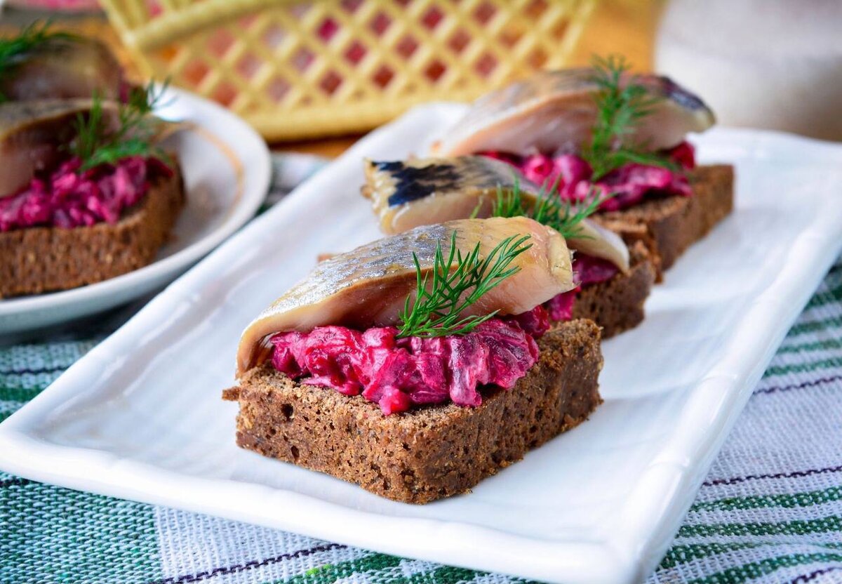 📖 Ингредиенты: - Хлеб/тосты - 5 шт. - Свекла варёная - 1 шт. - Сыр твердый - 50 г. - Чеснок - 2 зубчика - Сметана - 2 ст. л. - Сельдь - 200 г. - Зелень - по вкусу 🧑🏻🍳Приготовление: 1. Обжарить с двух сторон на растительном масле ломтики хлеба. 2. Натереть сыр, свеклу, чеснок. Сыр и свеклу взять в равных пропорциях. Чеснока добавить для вкуса, но чтобы не перебивал блюдо. 3. Перемешать и заправить сметаной. 4. Выложить массу на обжаренные тосты, сверху кусочки сельди и любую зелень