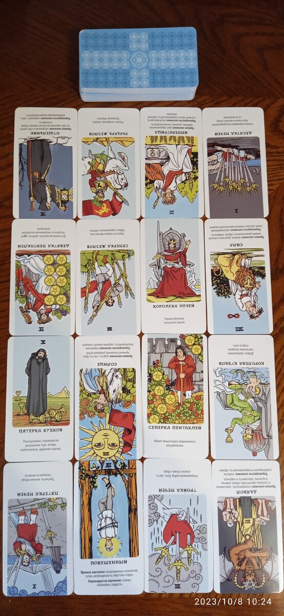 Что за человек? Его (её) описание личности. Человек незрелый, не способный дать совет или пролить свет на что-либо. Отсутствие мудрости. У него (у неё) сейчас проблемы со здоровьем и материальные затруднения. Этот человек мог совершить какой-то поступок, который сделал его (её) изгоем, отторгнутого (отторгнутой) обществом. Одиночество будет для него (для неё) нежеланной возможностью уединения, а тягостным проклятием. Человек сам избрал ( сама избрала) бегство от трудностей жизни и замкнулся (замкнулась) на своих проблемах и переживаниях. Если это женщина, ей необходимо сосредоточится на эмоциональной готовности быть женой/матерью, нет желания оставаться хорошей женой. Плохая мать. Безразличие к детям. То же самое, если это мужчина, нет желания быть отцом и хорошим мужем. Плохой муж/отец. Развод. Перевёрнутая "Императрица" может предвещать замужним женщинам потерю мужа, непослушание детей (внуков), разорение семейного дома. Скандалы - не лучшее средство улаживать отношения. Если этот че