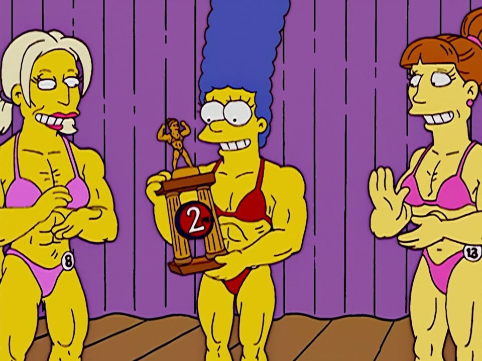 В 9-м эпизоде 14-го сезона (2 февраля 2003 года) на распродаже обанкротившегося магазина Гомер скупает всё подряд, в том числе и набор тренажёров. Их он ставит в подвал, и хозяйственная Мардж пускает эти тренажёры в дело. Потренировавшись, она понимает, что фитнес ей по душе, и решает стать культуристкой.