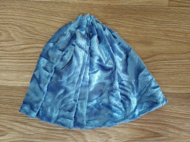 Для кукольного спектакля мне потребовалась рыбка. Сейчас я расскажу вам, как я ее шила. Если вам интересна эта тема, смотрите мастер-класс до конца. Перво на перво, я сшила основу - море, которое будет закрывать руку актёра. Я ее сделала из ламбрекена от штор. Поэтому подробно рассказывать не буду. 1. Сшила полоску ткани в кольцо. По одному краю прошила швом "вперед иголку" 2. И стянула так, чтобы туда проходил указательный палец. 3. Теперь перехожу непосредственно к самой рыбке. Из парчовой ткани, сложенной вдвое лицевой стороной внутрь, выкраиваю туловище. Обе половинки разделяю. 4. Из красной атласной ленты шириной 0,6 см нарезаю два кусочка по 4 см. 5. Складываю их пополам и закрепляю на туловище рыбы в передней его части, где должен находиться рот. 6. Из серебристой ленты шириной 2 см я нарезаю 3 кусочка по 5 см. 7. Складываю их пополам и закрепляю на спине рыбы. Это будет спинной плавник. Я их расположила веерно. Все это крепится на лицевой стороне туловища! 8. Накрываю второй по
