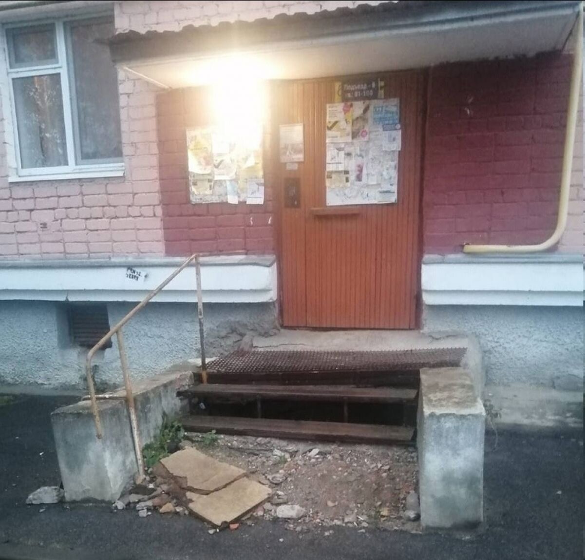 Жители Заводского района Орла два года ждут ремонта разбитого входа в подъезд