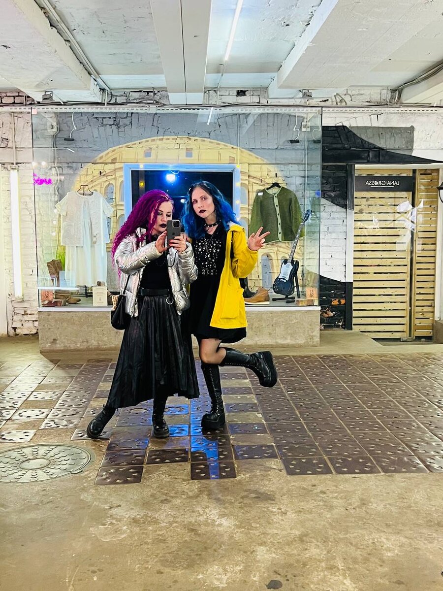 Вывела подросшую доченьку на концерт группы Сруб! Мне кажется, и мы с Ладой офигенно смотримся вместе, согласитесь? За последние 15 лет мне часто писали, что детям не повезло с мамой. Дескать, мама-фрик - Горе семье. Не знаю, что там и как будет дальше, но нам офигенно друг с другом. Отвела на концерт моей любимой группы, чтоб показать свою музыку, мою тусовку, погрузить в любимый вайб, рассказать как правильно вести себя на концерте, что нормально, а что нет. Я считаю, что все это важная часть воспитательного процесса. И еще большее сближение друг с другом. Одевалась Лада сама, - ботинки отжала у меня, остальная одежда так или иначе позаимствована (навсегда) из пушбашопа. Сборка образа ее рук дело. Красилась частично сама - я помогла с деталями. По музыке мы с ней частично совпадаем. Она меломан, но в плей листе частенько попадаются песни групп, которые относятся к готике. Так что весь концерт для лады - это тусовка с мамой и ознакомление с новой средой. Конечно ей очень по