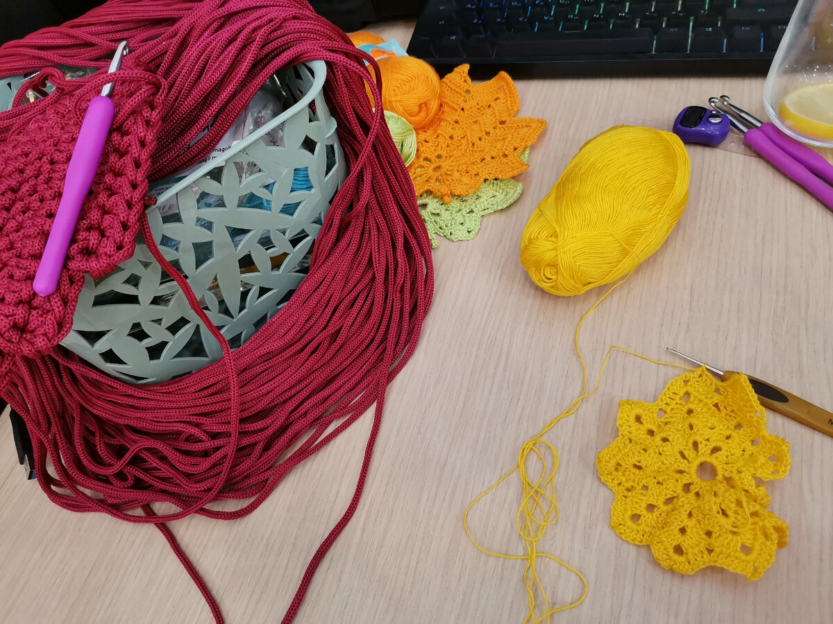 В этом году мне жутко захотелось сделать сезонный декор своими руками. И начать я хотела с осени... Что из этого вышло, читайте далее в статье 😏 Начало было очень бодрым! Я настроила планов, нашла кучу МК, набрала пряжи из запасов (давно не занимаюсь покупками, работаю с тем, что есть дома). Связала великолепную подставку, которая прижилась на кухонном столе. Правда, на ней поселился спатифиллум, который занимает половину стола, но не могу сказать, что меня это напрягает. Только радует! Параллельно занималась вязанием оченних кленовых листочков из тонкой пряжи. Хотелось их развесить в нескольких уголках дома. А получилось: Ладно, это шутка. Не висят они так. Не висят. Может быть, идея-то была здравая, но не хватило времени на исполнение. Во-первых, связано всего 3 листа. На большее меня не хватило 😫 Запал иссяк. Думаю, ничего особо страшного и непоправимого здесь нет: я сделаю другие листочки в иной технике 👍🏻 Во-вторых, что-то пошло не так с накрахмаливанием. МК посмотрела на юту