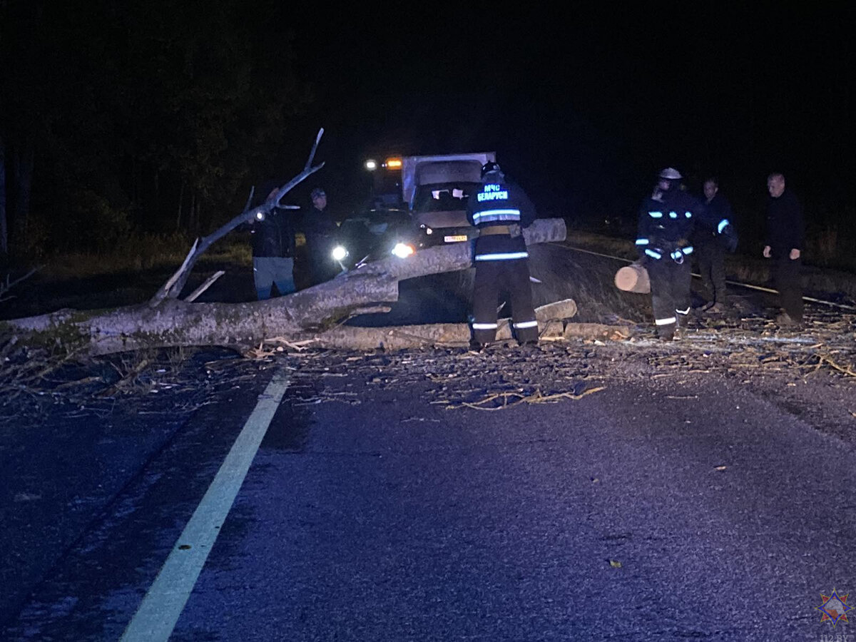 Работниками МЧС в 4 случаях проводились работы по распиловке и уборке упавших деревьев: падение дерева на проезжую часть дороги вблизи д. Ракшин Светлогорского района, вблизи д. Затон Светлогорского района, вблизи п. Селище-1 Добрушского района, падение дерева на кровлю жилого дома в д. Бобовка Жлобинского района. В результате падения дерева в Чечерском районе поврежден 1 частный легковой автомобиль. По состоянию на 07:00 8 октября в Гомельской области продолжаются работы по восстановлению электроэнергии в 2 населенных пунктах Гомельского района (п. Борец, д. Новая Бухаловка).