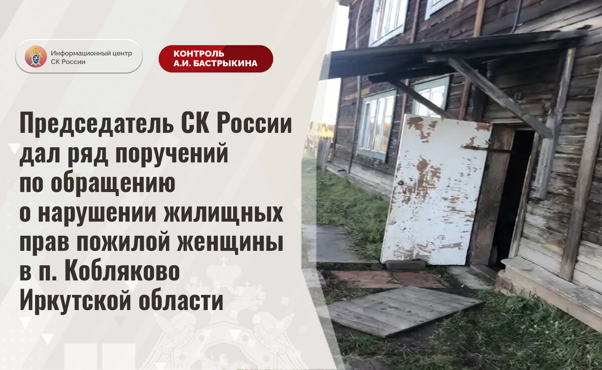 Председатель СК России дал ряд поручений по обращению о нарушении жилищных прав пожилой женщины в п. Кобляково Иркутской области