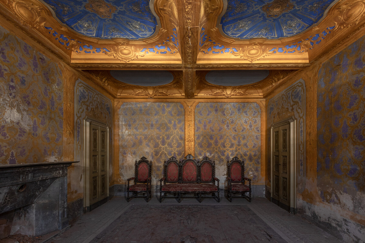 Пробираясь сквозь смурные бары да скромные домишки в маленьком итальянском селении, я напевала песню юности, которую знает каждый из вас: «Под небом голубым есть город золотой, с прозрачными воротами и яркою звездой». Вот только искала я не город, а заброшенный дворец старой многодетной вдовы, который по величию и роскоши не уступает мировым архитектурным шедеврам. Мы с ним однажды уже встречались: тогда дом предстал передо мной гордым принцем, что не нуждается ни в почестях, ни в гостях, ни в помощи. Он, залитый солнечным светом, обласканный фотографами, все еще блистательный, был самодостаточен в своей изящной красоте. Да, его ранили уже тогда — мраморный камин разбили, декор разворовали, мебель разорвали. Однако некоторые комнаты дворец сумел сохранить настолько детально, что это пугало: настолько не верилось, что в здании и правда никто не живет. Я волновалась перед встречей. Как он держится, мой красавец? Всё так же купается в самолюбовании? А может, сдался перед лицом времени