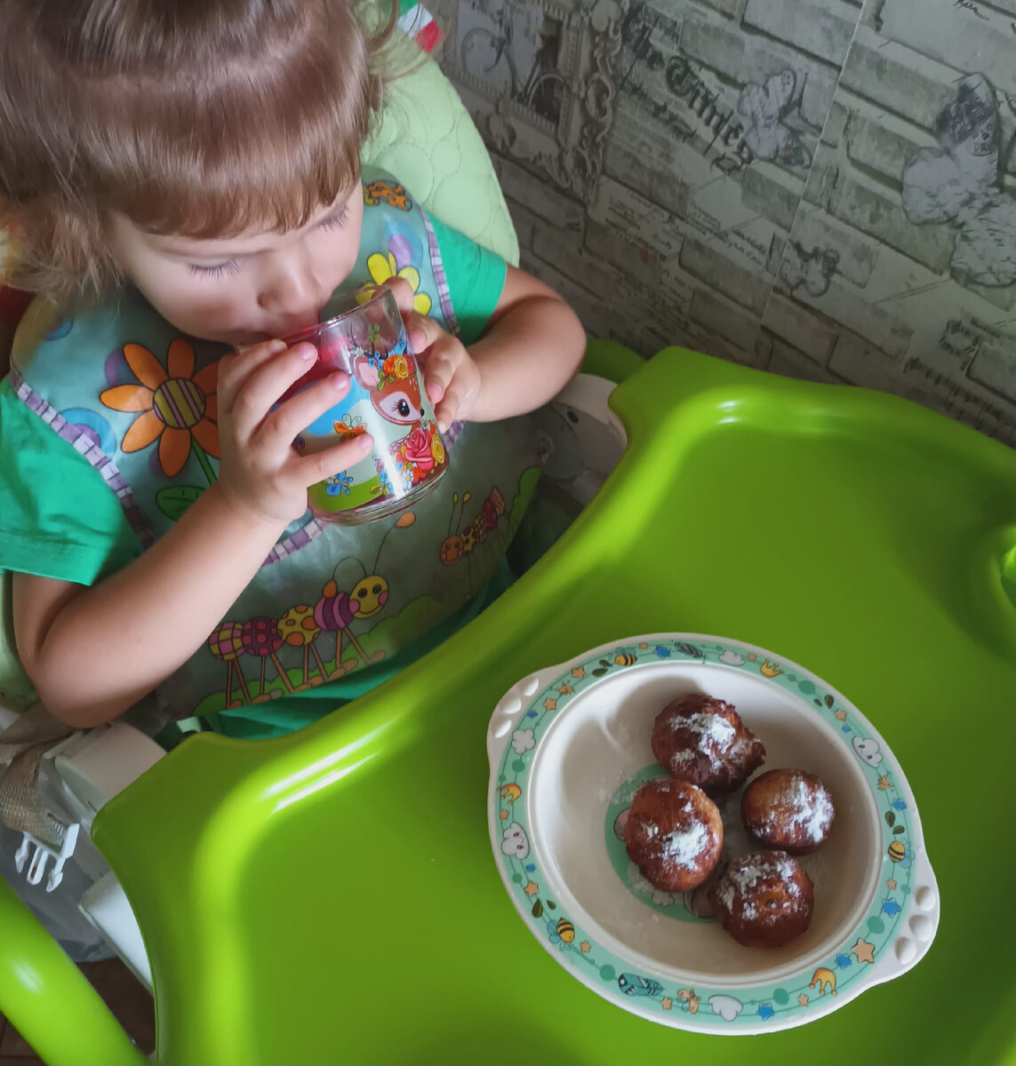 Здравствуйте! Что-то давно я ничего не писала про наше меню. Теперь, когда погода испортилась и дети ходят в сад, у меня стало больше времени, чтобы побаловать своих домашних их любимой едой. С утра у нас были творожные шарики. Еда, конечно не очень полезная. Но готовится достаточно просто, а главное, что я их готовлю в прок и замораживаю лишние. Поэтому иногда можно. Нам понадобится: Дальше всё очень просто. Перебиваю все ингредиенты блендаром и формирую шарики при помощи ложки и муки. Затем просто обжариваю в разогретом масле и выкладываю на салфетку. Не нагревайте масло слишком сильно иначе шарики слишком быстро зарумянятся и останутся сырыми внутри. Затем мы совершили небольшую вылазку на улицу. Погода у нас не очень, поэтому достали зимнюю одежду. Хотя ещё пару дней назад было достаточно тепло. Кстати, забыла вам рассказать. В четверг забирала Олю из сада, а папа с Алёной ждали нас около дома, но у соседнего подъезда. Подходим к ним, поворачиваю голову, а наша маленькая соба