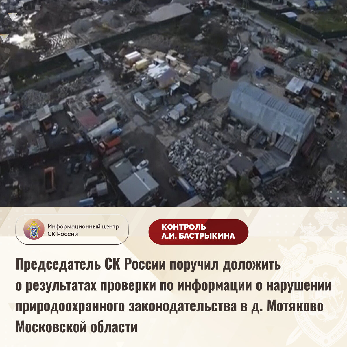 Председатель СК России поручил доложить о результатах проверки по информации о нарушении природоохранного законодательства в д. Мотяково Московской области