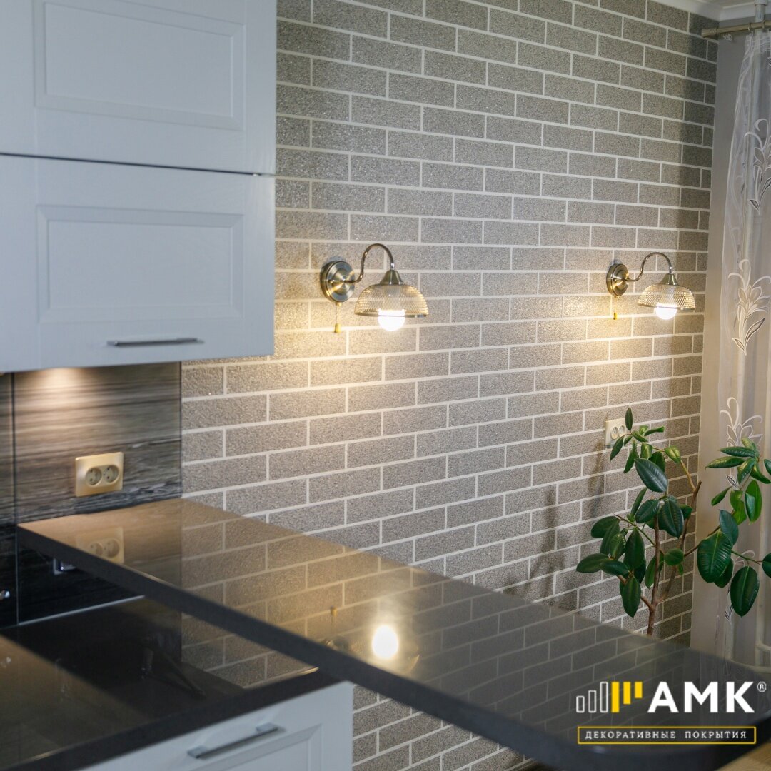 #готовыеобъектыамк - акцентная стена на кухне.