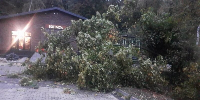 В Центральном парке в Воронеже сильный ветер повалил дерево