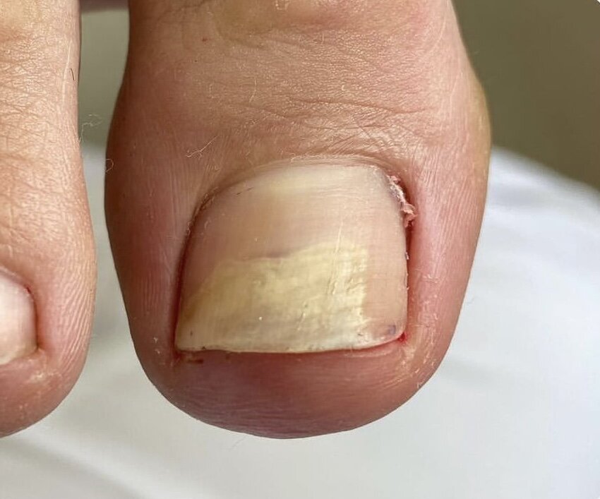 Отслоение ногтевой пластины может начаться с боковой стороны или по центру.