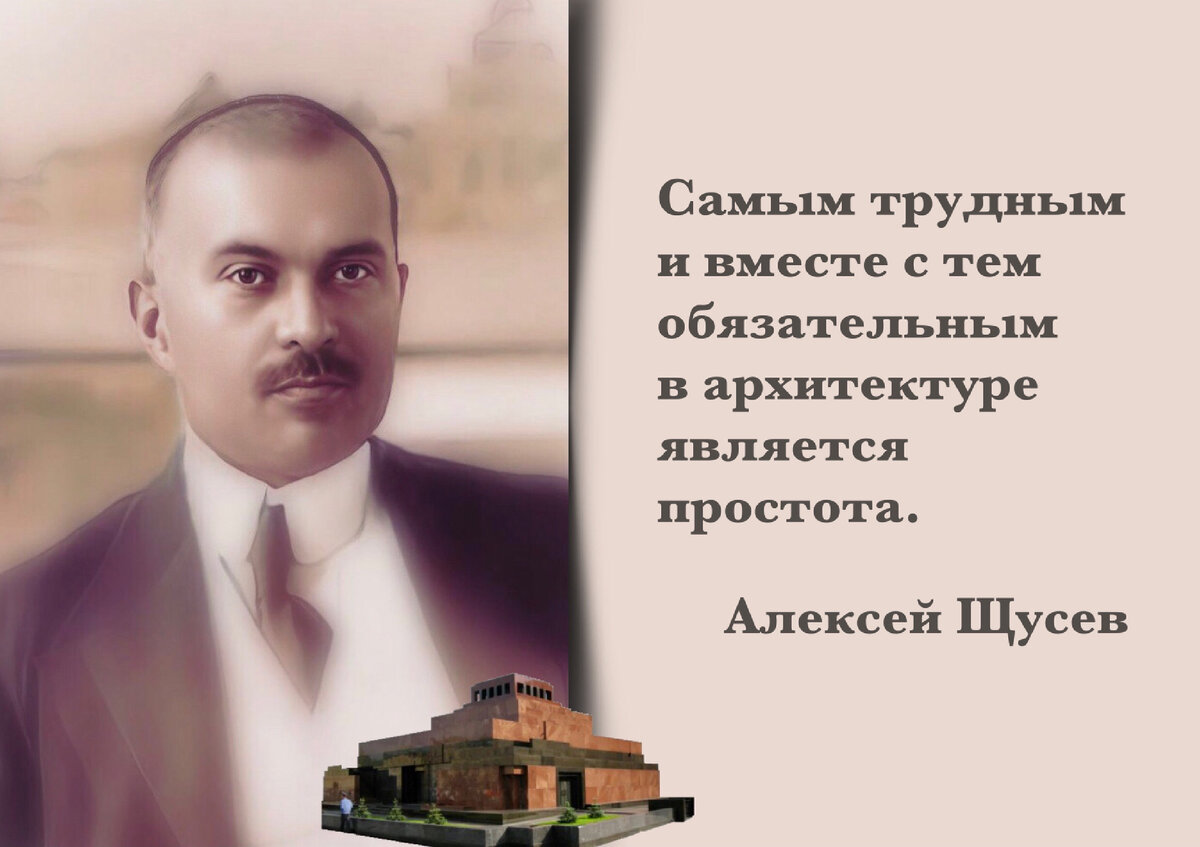 Имя Алексея Щусева на слуху в всех, даже у людей, не имеющих никакого отношения к архитектуре. «А-а, это тот самый сталинский любимец, который построил Мавзолей, Казанский вокзал и сверхсекретное здание КГБ на Лубянке», - сообщит эрудированный обыватель. Но Алексей Викторович Щусев — фигура в истории российской архитектуры сложная, противоречивая, и до сих пор недооцененная. Он оказался единственным в своем роде мастером, достигшим одинакового успеха практически во всех архитектурных стилях, которые рождались и умирали в бурном ХХ веке. Предреволюционный неорусский стиль, применяемый им при строительстве церквей, плавно перешел в проектирование конструктивистских зданий 1920-х, а затем – и в построение культовых монументальных сталинских сооружений.