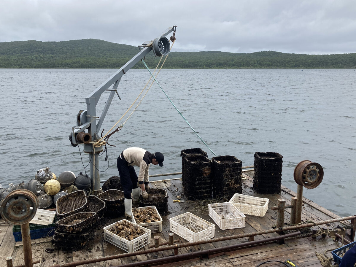 Остров Русский расположен в заливе Петра Великого в Японском море, в непосредственной близости от Владивостока. Вы точно видели мост Русский, связывающий материковую часть с островом, потому что он изображен на купюре в две тысячи рублей. Невероятно красивая природа, скалы и пустынные пляжи достойны отдельного рассказа, он будет чуть позже, а пока мы проезжаем прямо к одной из морских ферм острова. Ничего человек разумный не пускает на самотек, вот и добыча морепродуктов взята под контроль. Морская ферма состоит из технологических помещений внутри старого корабля, пришвартованного очевидно на вечную стоянку, и бухты - "пастбища" вокруг него. Совершенно незнакомое для меня существо - трепанг. Конечно, я слышала о нем, но как это выглядит? Трепанг - это беспозвоночное, на ощупь мокрое и приятное. Технология разведения сложна и требует времени. Четырехлетних особей нужно достать из моря и дождаться, пока они помечут икру. Мальков высаживают на специальную сетку имитирующую водоросли. Там