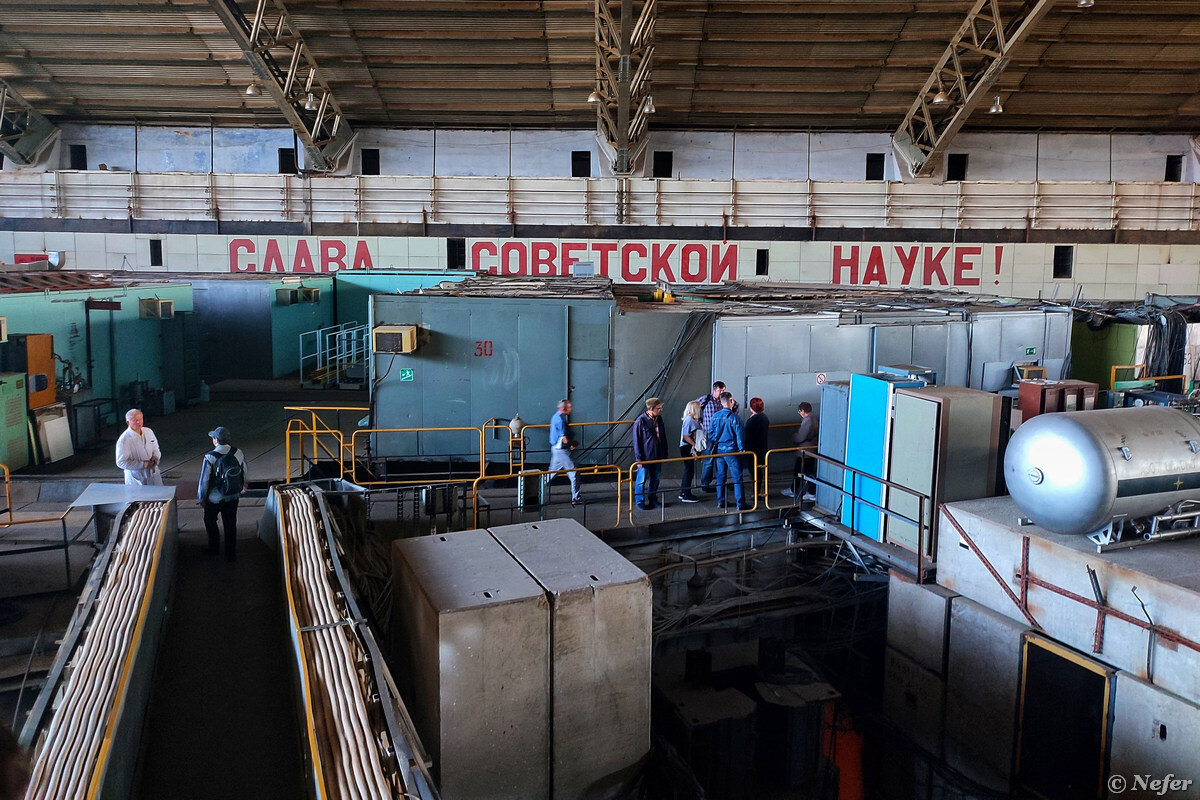 Ускоритель построен в 1967 году и запущен к 50-й годовщине Октябрьской революции. На тот момент он был крупнейшим в мире. Благодаря протвинскому синхротрону проведены тысячи экспериментов и совершены важные открытия, в том числе "серпуховский эффект" (населенный пункт тогда назывался Серпухов-7). Исследования проводятся до сих пор. Мне довелось побывать в институте физики высоких энергий и увидеть своими глазами легендарное сооружение. Институт физики высоких энергий существует с 1963 года. Сейчас на нем висит вывеска НИЦ "Курчатовский институт" - ИФВЭ. Это один из крупнейших научных центров в России, который занимается физикой высоких энергий. Корпуса института расположены посреди леса. Чтобы попасть в ускорительный комплекс необходимо спуститься ниже уровня земли. Мобильная связь отсутствует, сигнал не ловит. В выходные работников нет, в залах тихо. На фото линейный ускоритель протонов с высокочастотной квадрупольной фокусировкой на энергию 30 миллионов электронвольт УРАЛ-30. Физики