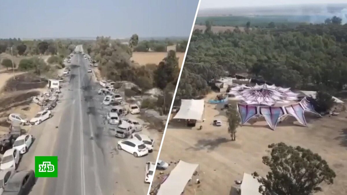 Последствия нападения ХАМАС на музыкальный фестиваль: видео с дрона