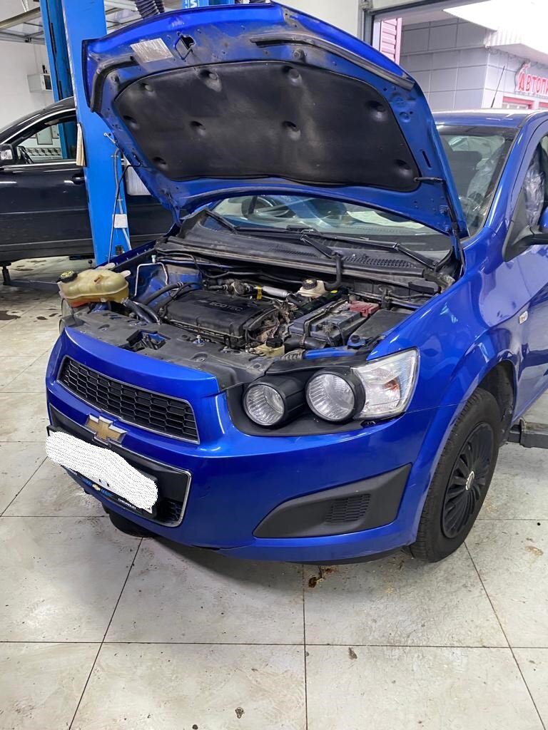 CHEVROLET AVEO синий 2012г.в 122000км У клиента заклинило термостат и начал подтекать корпус Для устранения принято решение заменить корпус термостата в сборе Стоимость под ключ 15000 руб