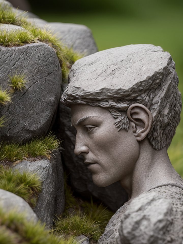 💪Преобразование фактуры камня на статуе: гранит и серебристый сланец в идеальном контрасте с природной травой