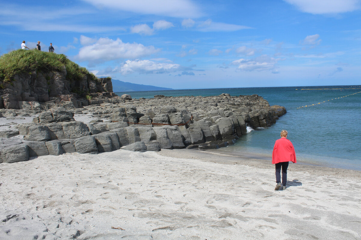 Приехали к Черным скалам. Сильный ветер, но не холодно. Черные скалы из вулканической лавы. Вид в другую сторону. Залезем и мы наверх :) Виды слева направо. Вдали видны Белые скалы. Спускаемся. И на камнях растут цветы! Едем теперь к Белым скалам.