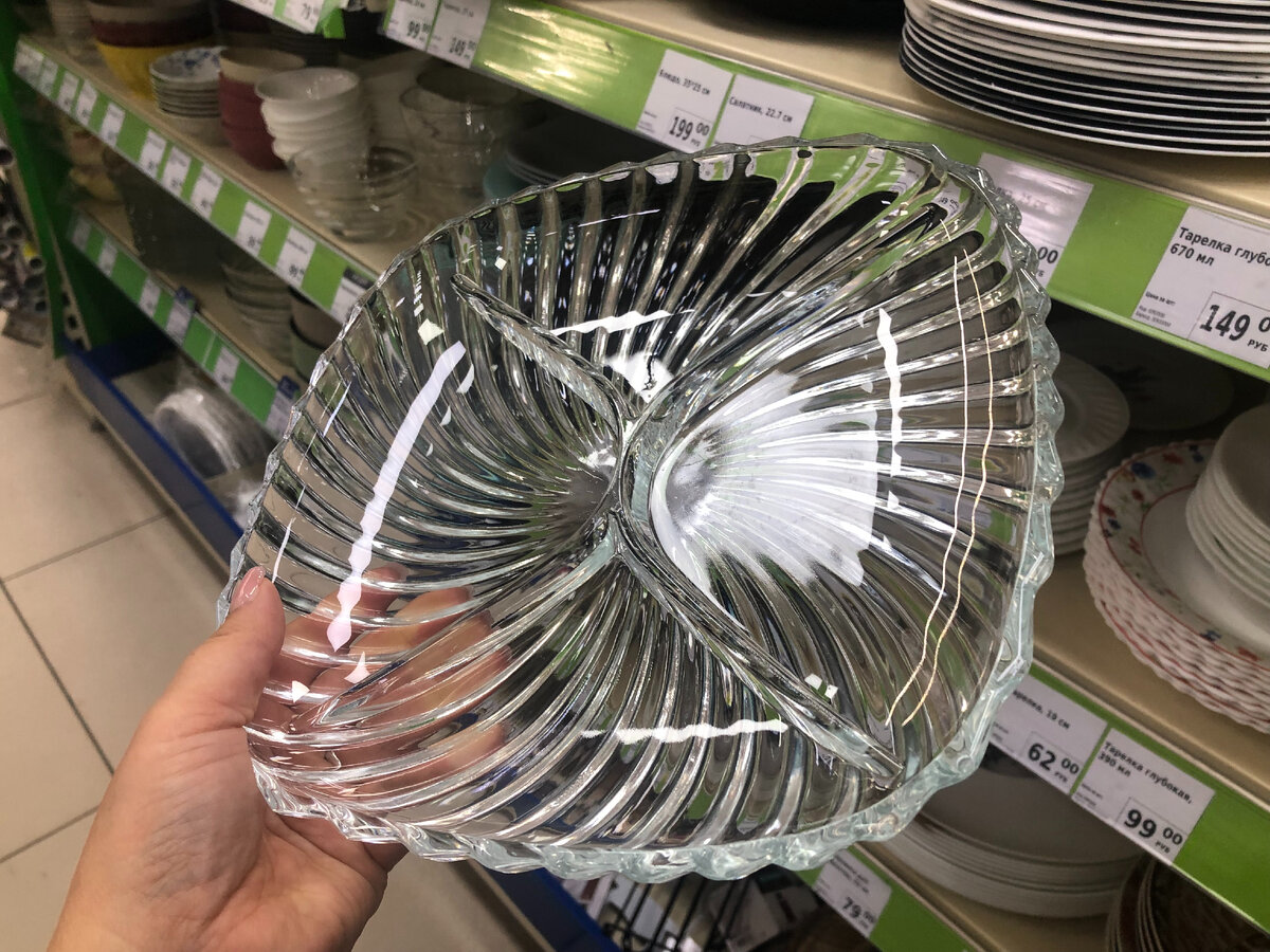 Всем огромный привет! Магазин Фикс Прайс подготовил неплохие новинки. Что же привезли на этой неделе? Расскажу подробно и по порядку. Очень понравились стеклянные менажницы на 4 секции. Смотрятся очень красиво. Отлично подойдет для сервировки стола, для нарезки.Они размером 25 см. Цена 249 рублей. Продаются в коробочке. Изготовитель Иран.