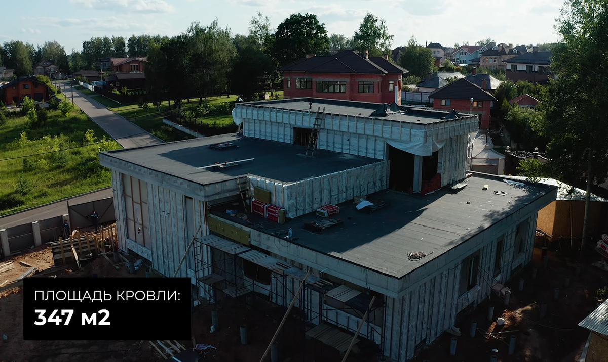 - Общая площадь основания кровли по плоскости — 347 м²