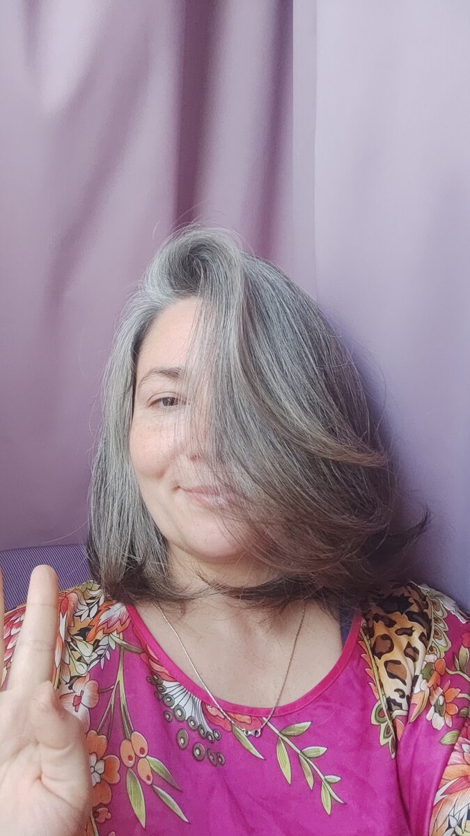 Как видно, волосы уже по другому лежат, уже и цвет немного другой сбоку открылся, не такой как спереди. Седина преподносит сюрпризы.