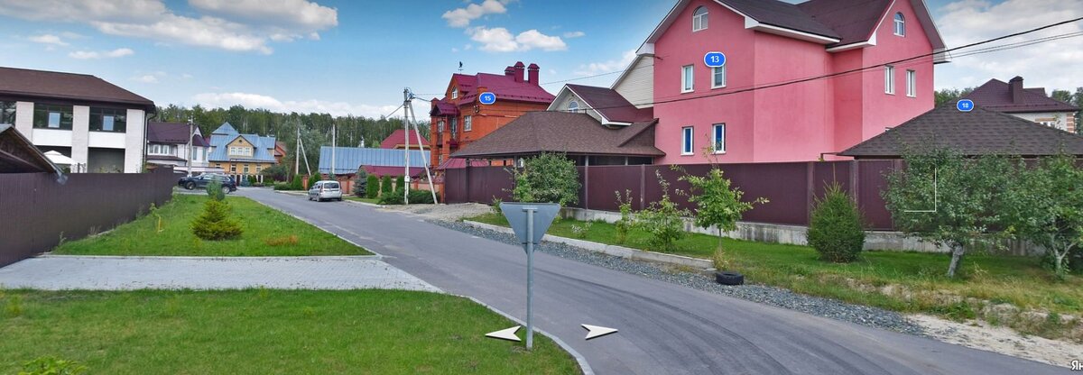 Ниже представлены скрины из совершенно случайного расположения на Яндекс Панораме наблюдателя. Каждый из нас может наблюдать подобное в окружающей действительности. Широта души застройщиков переливает всеми цветами красок. Всеми формами и типом материала.