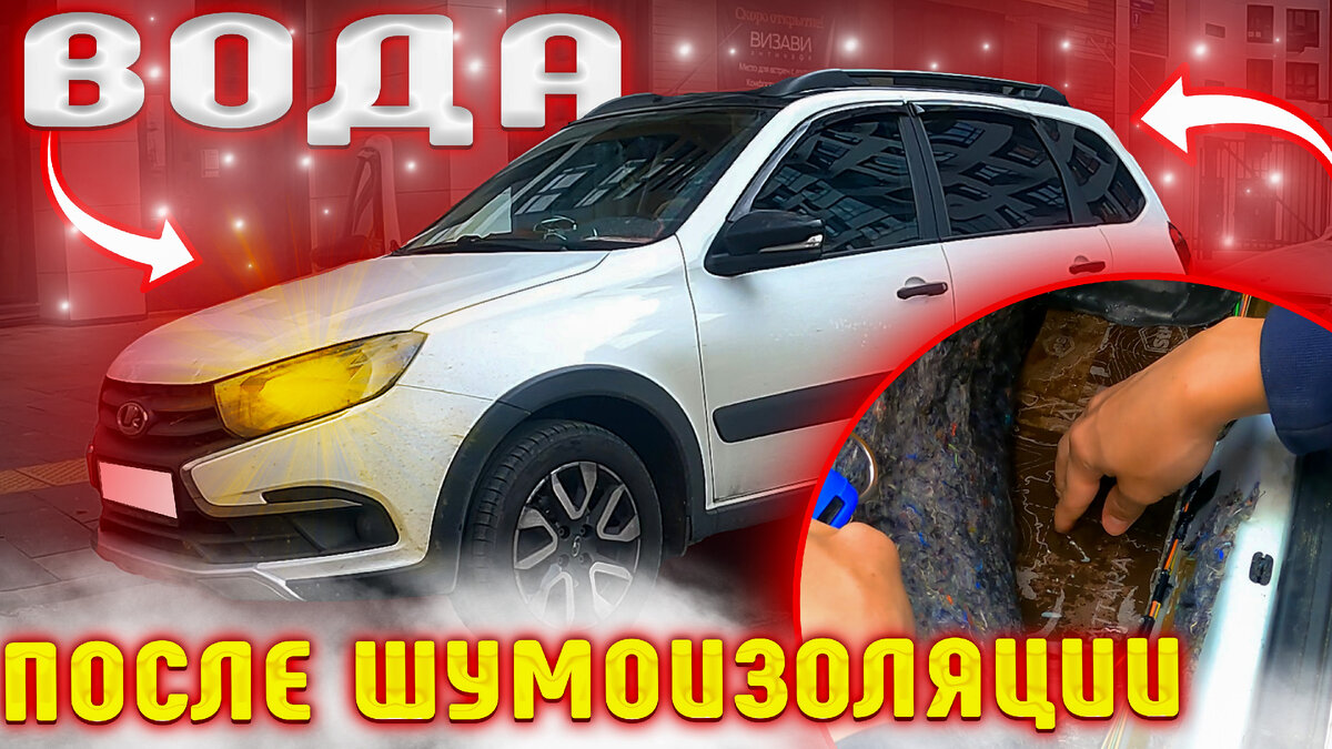 Всем привет! Рады приветствовать вас в нашем блоге! Сегодня в статье мы расскажем интересный случай, который произошел недавно. К нам в студию приехал клиент, у которого произошел неприятный инцидент. Автомобиль – Lada Granta Cross. Проблема – некачественно выполненные ранее работы по шумоизоляции и как следствие – вода в салоне в районе пассажирского сидения. Конечно, первостепенной задачей перед нами стояло избавление от огромной лужи под ковролином, просушка уже установленного материала, а затем локальные доработки непосредственно нашими материалами. Начинаем с разбора, снимаем сидения, ковролин и обшивки. Ковролин помещаем на сушку. К слову, ковролин в прямом смысле можно было выжимать, его войлочный состав впитал в себя очень много влаги, что в последствие стало бы благоприятной атмосферой для гниения и образования неприятного запаха в салоне. Вторым этапом работ с ковролином является химчистка и повторная сушка. Устанавливать влажную обшивку в салон нельзя. После того, как вся в
