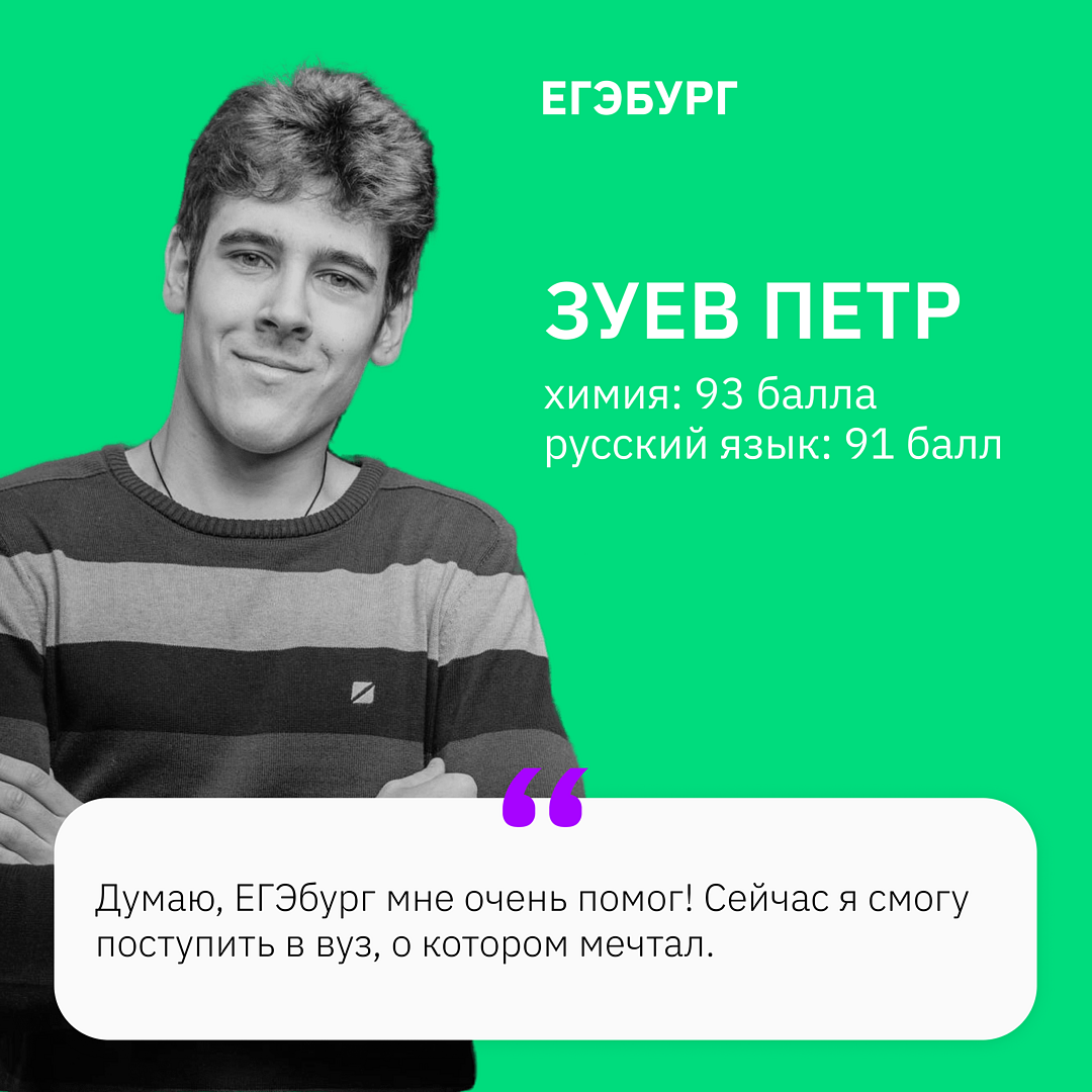 Я получил по химии 93 балла. В этом мне очень помогла Анна Федоровна Гусева. В начале года химия мне казалась очень сложным предметом. Но благодаря занятиям и конспектам я подготовился и уже зимой понял, что все будет хорошо.