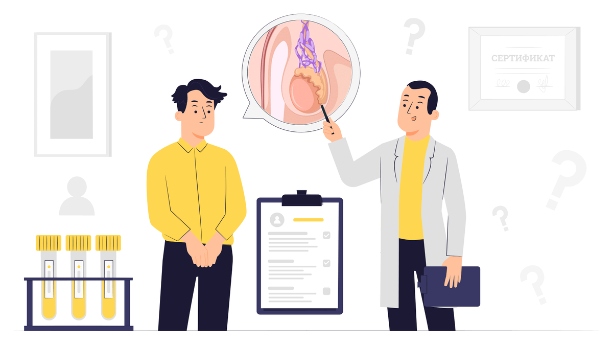 Сначала он проведет медицинский осмотр, пропальпирует мошонку, соберет анамнез и выслушает жалобы. Затем он назначит исследования: