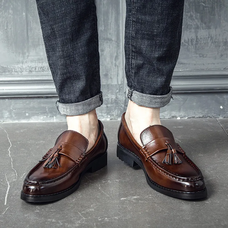 5. Коричневые лоферы с кисточками и зауженные джинсы