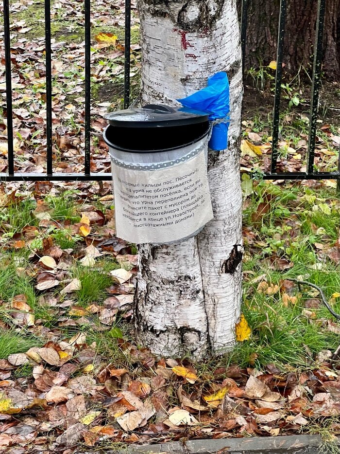 Интересно, кто-то из пикабушников, проходя мимо, вынес бы пакет с мусором из такой урны? Такая вот импровизированная мусорка появилась на нашей улице, на участке тротуара вдоль школьной территории. Это не моих рук дело, идея принадлежит ещё кому-то неравнодушному жителю посёлка, однако я сомневаюсь, что предложенная методика окажется рабочей) Урна, впрочем, там действительно не помешает, других-то нет, а газон вечно завален фантиками, бутылками и прочей дрянью, которую разбрасывают прохожие. Автор идеи даже снабдил урну запасными пакетами, но что-то я сомневаюсь в большом количестве желающих следовать призыву. * Небольшой пригородный посёлок в окрестностях Петербурга, население ~10.000 человек, муниципальных урн не сказать, что много, на некоторых улицах нет вообще, дворников тоже нет, мусор убирается редко и не слишком тщательно, потому неравнодушные жители пытаются что-то делать самостоятельно. Пост автора VTSPB. Комментарии