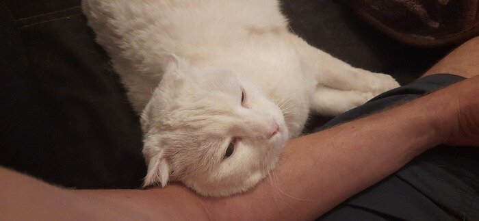 После того, как наш любимый и родной кот Буся отправился на Радугу мы, вроде бы, зареклись заводить других. Но, примерно, через полтора месяца у нас появился котенок. Оникс рос, радовал нас свой красотой и не очень радовал своим характером. И вот, в какой-то момент, мне совершенно случайно Авито в поиске выдало объявление о пристрое котика. Белого и вислоухого, очень сильно похожего на Бусю в детстве. Я написал, правда, без особых надежд, ибо основная проблема была в том, что забрать котёнка я смогу не раньше, чем через 2 недели. Хозяйка согласилась подождать. В итоге, забрать смог практически через месяц. В итоге, у меня появилось вот такое чудо. Которое, кстати оказалось девочкой. Причём, как ответственный котовладелец, я прекрасно понимал, что нужно обследование. В итоге обнаружили: блохи (решено), немножко лишай (почти решено), глисты (скоро обработаем) и что-то вирусное (вылечили). Сейчас ласковая девчонка сидит в заточении, ждёт когда сможет познакомиться со своим будущим другом.