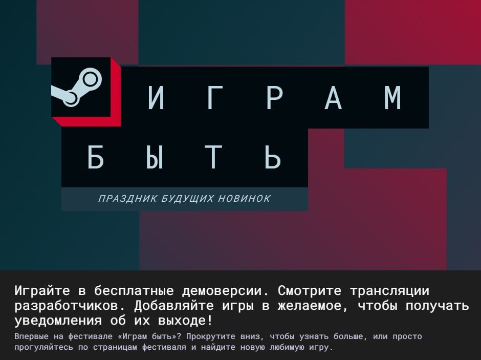 Играйте в бесплатные демоверсии. Смотрите трансляции разработчиков. Добавляйте игры в желаемое, чтобы получать уведомления об их выходе! Фестиваль закончится 16 октября в 20:00 по МСК https://store.steampowered.com/sale/nextfest