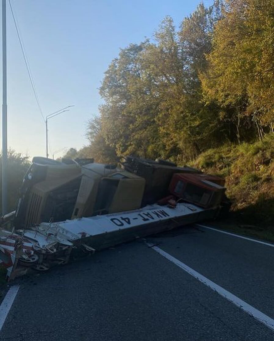 Перевернувшийся большегруз перекрыл трассу в районе Верхней Эшеры