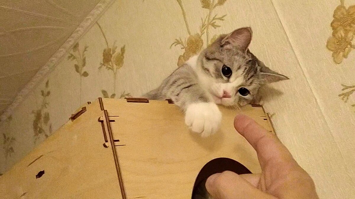 С "контуперного" кресла мне видно кухонный стол в потемках и кошачий силуэт на нём. Маленький, шустрый, ловкий силуэт с острыми, чуткими ушами. А так как Беляшик сопел со мной рядом на диване, было понятно чей это там силуэт на столе. Пока я лениво кричал в темноту кухни страшные угрозы, пока собирался пойти навести порядок, этот ушастый силуэт метнулся у меня под ногами и материализовался на домике на верху шкафа. Осталось только грозить пальцем и вступать в заведомо проигранный разговор.