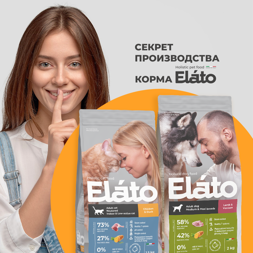 Спрашивайте корм Elato в зоомагазинах вашего города!