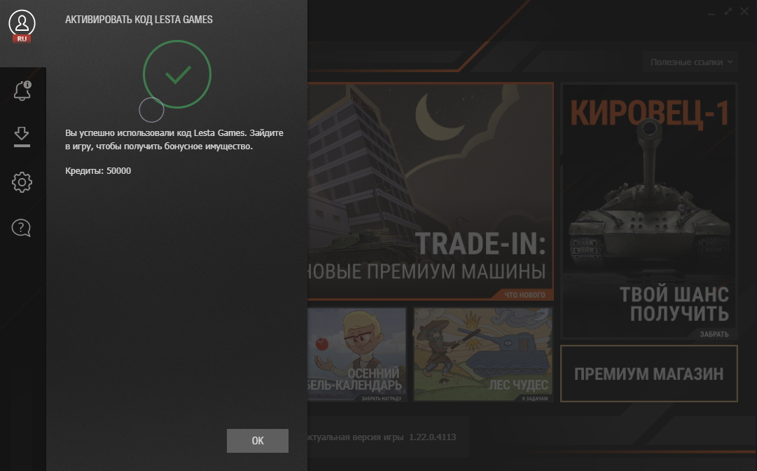 Бонус-код для Мира танков. Октябрь 2023. B1ACKVAS1 — многоразовый бонус-код. Получаете: • 50 000 кредитов на аккаунт. Предустановленный ввод кода по ссылке! Внимание! Из-за большого количества активаций бонус кода он не всегда срабатывает с первого раза. Рекомендуем попробовать ввести код чуть позже или активировать его через LGC. Предлагайте темы для обсуждения в комментариях, ставьте лайки и подписывайтесь.