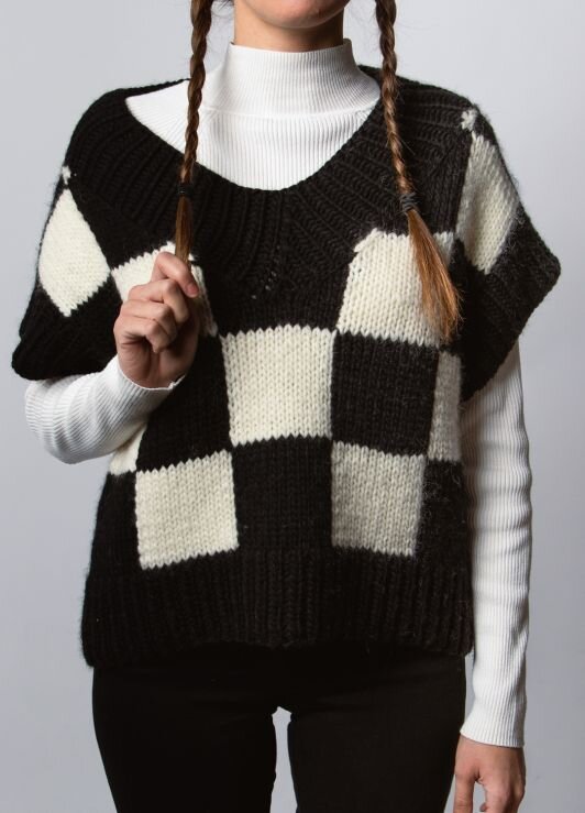 1. Жилет со спущенными плечами в шахматную клетку