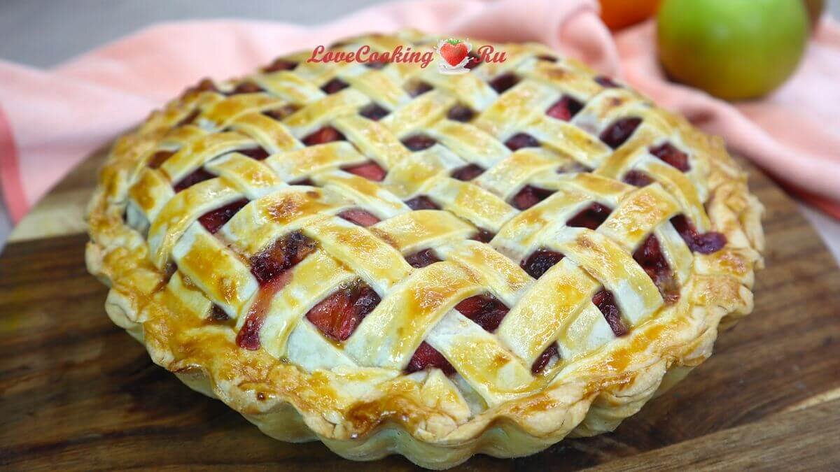 Слоёный яблочный пирог с брусникой - идеальное дополнение к чашечке ароматного чая. Тонкое тесто, которое получается пропитанным внутри пирога, но образует хрустящую корочку снаружи. Обилие сочной яблочной начинки с брусникой. Вкуснейшее сочетание! Приготовьте такой пирог с яблоками, уверена, вы не пожалеете. Ингредиенты на яблочный пирог Яблочный пирог диаметром 22 см, весом около 1,3 кг: Тесто для пирога: 330 г пшеничной муки