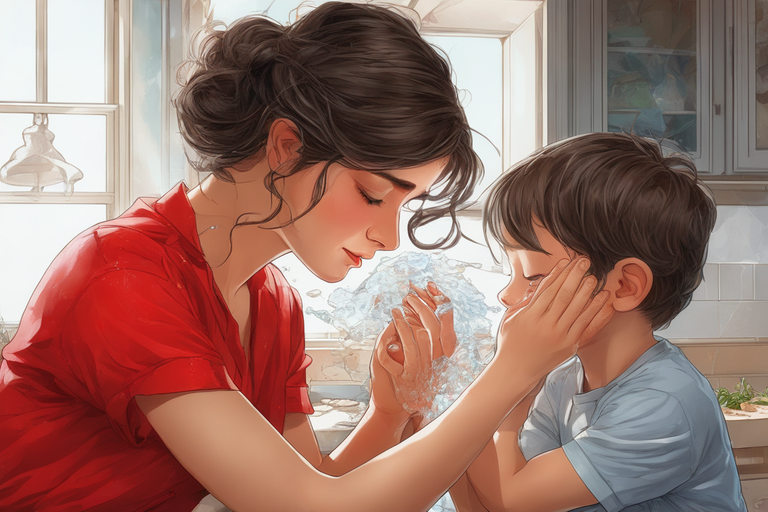 - "Мам, ты меня больше не любишь?" - спросил маленький Макс, смотря на свою маму, Лизу, с большими глазами, полными надежды. Лиза взяла Макса на руки и погладила его по волосам. Ей было больно видеть, как её малыш страдает от её и её мужа отдаленности. Лиза (грустно): - Конечно же, я люблю тебя, Макс. Никакие проблемы между мамой и папой не могут изменить мою любовь к тебе.