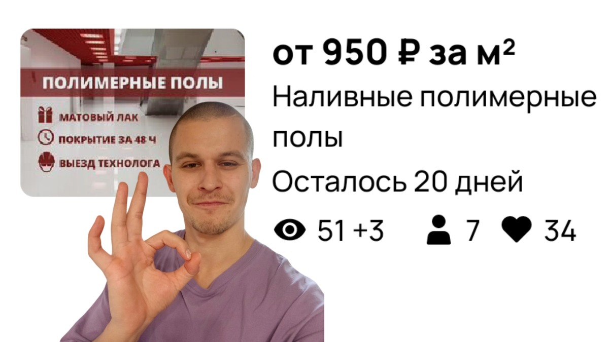 Я за минуту объясню тебе один из лучших методов оказания услуг на Avito, по этому поддержи данный пост лайком. Я уже как второй год пользуюсь услугами Avito и что я только не продавал и не приобретал. Опыт есть в каждой сфере данного приложение. Конечно, часть из них устарела и говорить про них я не буду, но есть олдскул который всегда будет в топе, а именно оказание услуг! Начну с себя и с конкурентов. Мой бизнес это полимерные полы по Москве и МО на Авито только один запрос по Москве «Полимерные полы или Эпоксидные полы или Наливные полы» показывает больше 2 000 объявлений а в МО более 5 000 и как я попадаю в первые 20 строк выдачи без оплаты услуг Авито я сейчас тебе объясню. 1 – Заголовок, это поиск Любой запрос на твои услуги это, поиск по твоему названию. Название твоей услуги может уйти на последние страницы если ты укажешь только 2 ключевых слова например «Полимерные полы» и тут тебя не спасет ни бюджет, ни отзывы ни визуал…. На данном этапе конкуренции на Авито лучше указыват