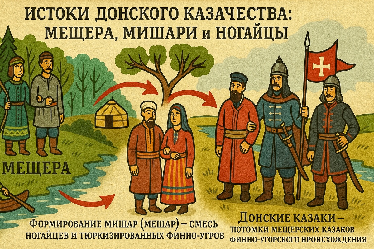 Исходя из ролика в ютуб "История Донских Казаков и Донского Казачества" и другой информации становится понятным, что ныне часть татарского народа -Мишари(Мешары) -это смесь переселенных в земли Мещеры тюркоязычного народа Ногайцев и впоследствии тюркизированной части финских народов как Мещера, близкородственной либо идентичной мордве(Мокша,Эрзя), так и частично самой мордвы(Мокша,Эрзя), а изначальные Мещерские Казаки из финского народа Мещера, обитавшие в земле Мещера, были переселены на Дон и стали основой самого мощного, многочисленного и боеспособного Донского Казачества. Поправьте, если у кого-то другие доводы и контраргументы. https://www.youtube.com/watch?v=lg-TLwUnoTU&feature=emb_logo