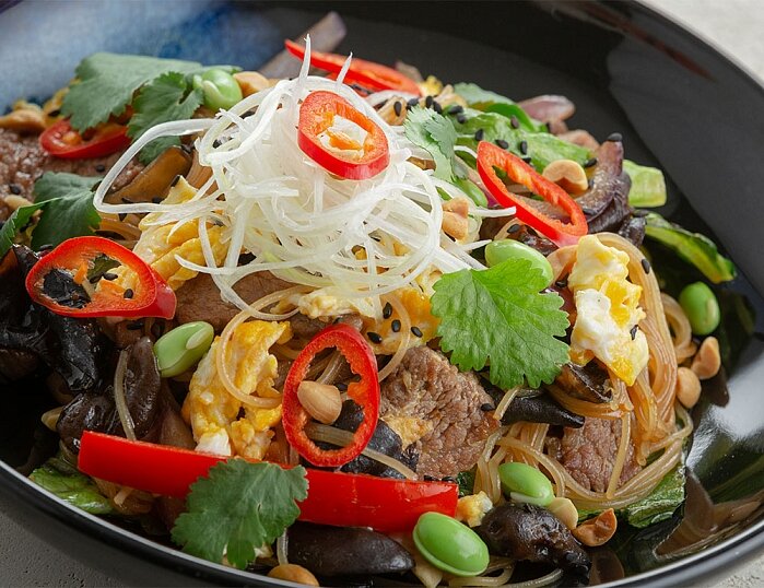 Переходите в раздел «Горячие блюда»и выбирайте то, что согреет именно вас Настроение осень. Неотъемлемые обереги от осенней хандры: теплый плед, потрескивание камина, звуки джаза на фоне, вкусная еда и, конечно, любимые люди рядом. Зовите близких, включайте любимые фильмы или сериалы, а мы позаботимся, чтобы было вкусно: Рис с креветками в сливочном карри Яркий во вкусе сливочный карри с каплей чесночного и лукового масла укрывает мясистые креветки и нежный гребешок. Чтобы было еще сытнее мы добавили горку риса в серединку, 2 вида грибов и сладкие овощи. Вышло насыщенно и пикантно. Пад Тай с креветками и курицей Из Таиланда с любовью! Быстро обжаренная в соусе Пад Тай лапша, сочные тигровые креветки и курица с яйцом. Для полного взрыва вкуса добавляем хрустящие ростки сои, острый чили и ароматную зелень. Советуем сбрызнуть Пад Тай соком лайма, чтобы стать хоть на мгновение истинным тайцем. Китайская лапша с говядиной и бульоном Для самых теплых вечеров. Очень сытное, наваристое бл
