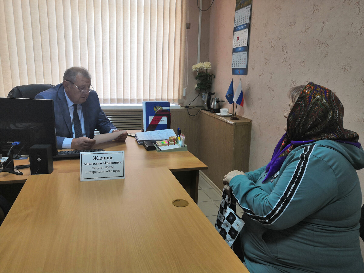 В Новоалександровской местной общественной приемной партии «Единая Россия», в рамках недели тематических приемов граждан по защите прав трудящихся, депутат Думы Ставропольского края, член комитета по аграрным и земельным вопросам, природопользованию и экологии Анатолий Жданов провел прием граждан. Несмотря на заявленную тематику приема граждане обратились с вопросами различных категорий. Жительница города Новоалександровска пенсионного возраста обратилась к краевому депутату с просьбой помочь в вопросе оформления группы инвалидности по заболеванию ее сыну и оказать материальную помощь в связи с трудной жизненной ситуацией. Далее, к депутату обратился председатель районной общественной организации общества слепых с просьбой об оказании благотворительной помощи для организации проведения ежегодной краевой акции «Месячник Белая трость – 2023». Настоятель храма Пророка Божия Илии поселка Рассвет попросил об оказании помощи в хозяйственной деятельности храма. Представитель администрации Нов