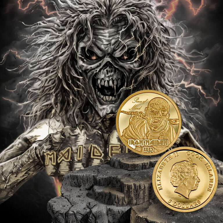 Уже в начале 2023 года выходит ограниченная серия золотых монет Острова Кука, посвященная легендарной группе Iron Maiden! 🤘