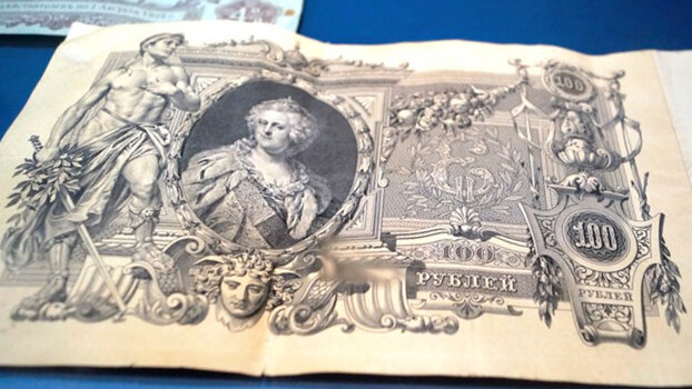 Это первые бумажные купюры в России, на которых стали печатать портреты людей. На 100 рублях портрет императрицы Екатерины II, в народе эту денежку стали ласково называть «катенька». На банкноте в 500 рублей – портрет Петра I, ее прозвали «петенькой».